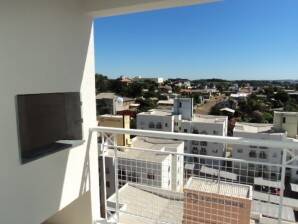 Apartamento com dois quartos, sala de estar e jantar, cozinha e área de serviço, banheiro, sacada com churrasqueira, piso cerâmico, uma vaga de garagem, ótima posição solar, 7º andar possui elevador , apartamento próximo ao colégio Trilingue.