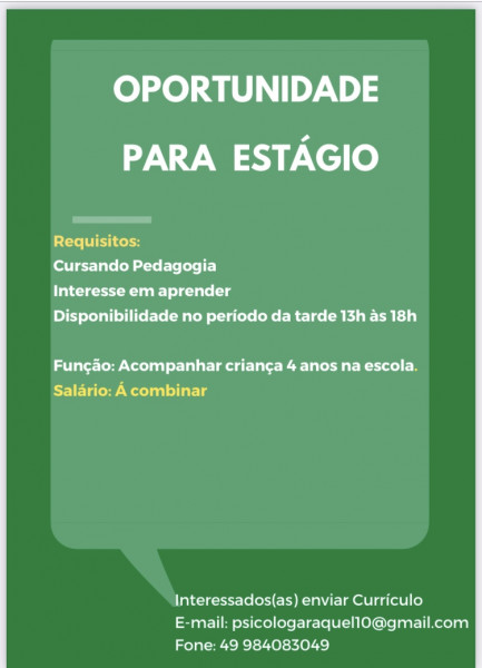 Interessadas(os): Enviar currículo para psicologaraquel10@gmail.com